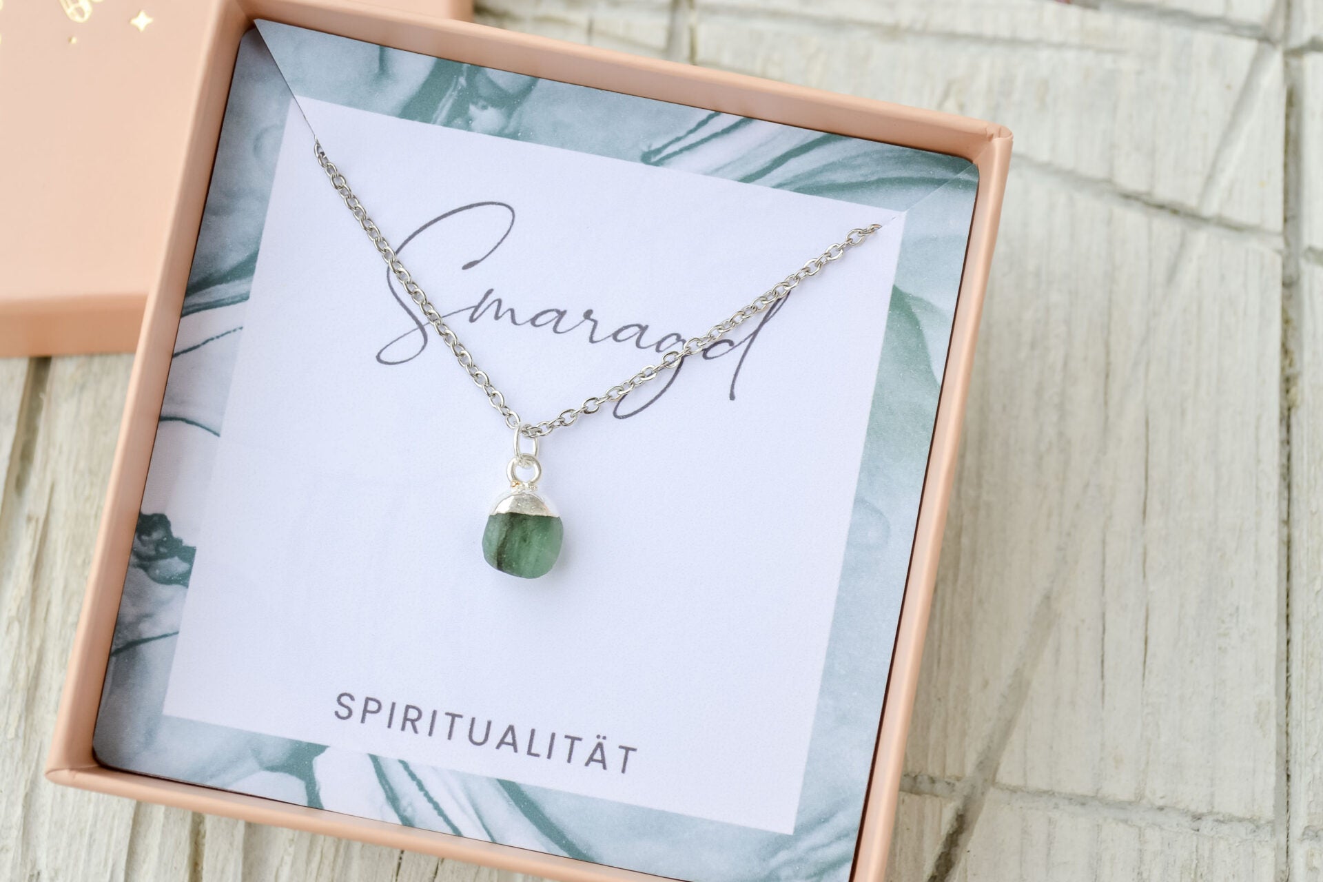 Diese zarte Edelstahl-Halskette ist mit einem wunderschönen Smaragd-Anhänger versehen, in Edelstahl oder Edelstahl vergoldet. Die Kette ist in 4 verschiedenen Längen erhältlich (siehe Auswahl). Außerdem ist diese Kette ist in vielen verschiedenen Kristall bzw. Farbvarianten erhältlich - durch ihre Zartheit ist sie auch wunderbar geeignet als Layering-Schmuck.