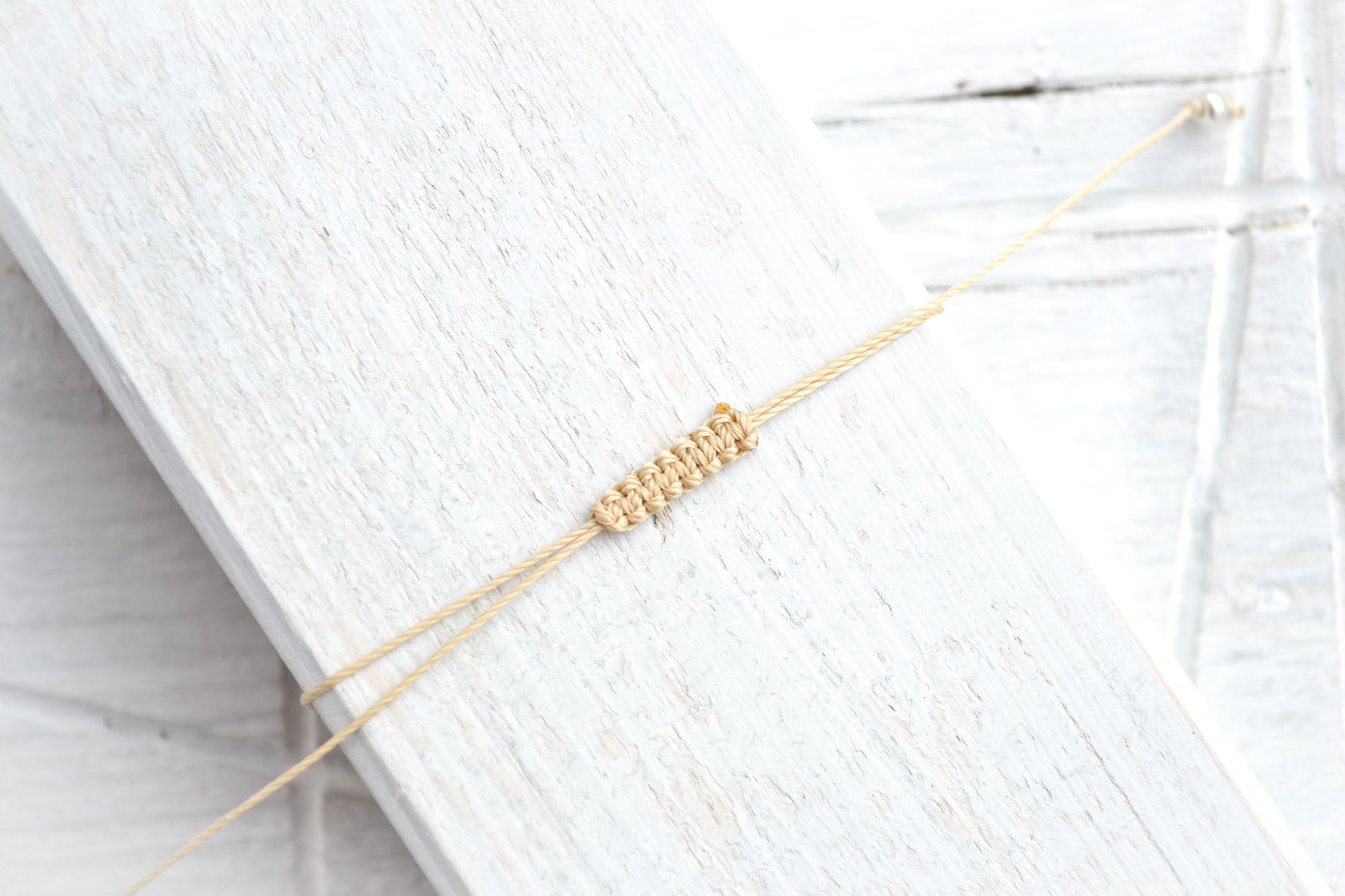 Das Armband ist mit einem Schiebeknoten geknüpft, sodass es stufenlos längenverstellbar ist und jedem Handgelenk passt. Am Ende des Armbandes befinden sich dann auch nochmal diese kleinen Edelstahlperlen.